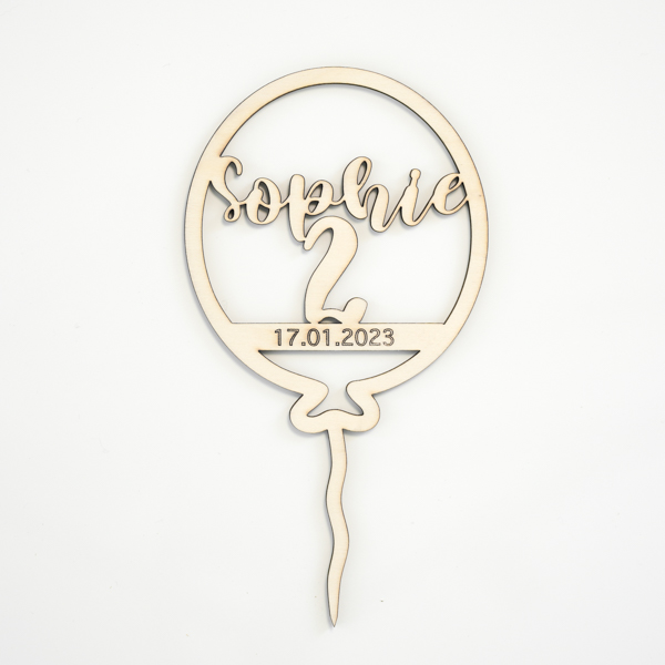 • Personalisierter Cake Topper aus Holz “Luftballon mit Wunschname, Zahl & Datum”