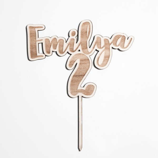 • Personalisierter Cake Topper aus Holz “Name & Zahl mit Rand”
